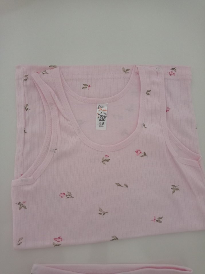 Pastel pembe renkte, çiçek desenli çocuk atleti, yumuşak kumaştan üretilmiştir. ürünlerim sıfır yaşlar 4,5 yaş ve 8,9 yaş mevcut tek akım 75 çoklu alim 150 olur