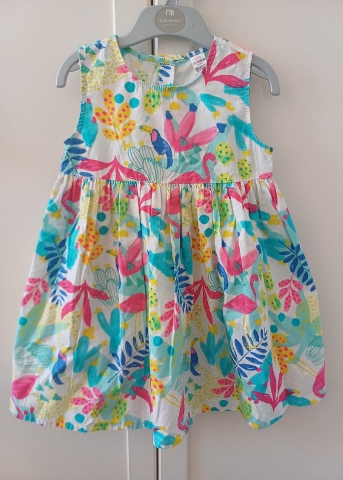 4-5 yaş az ve temiz kullanılmış Lcw marka flamingo desenli kız Çocuk elbise. Arkadan komple düğmeli, çok şirin bir elbise #etek #tayt #şort #mayo #kotelbise #tişört #ceket #yelek