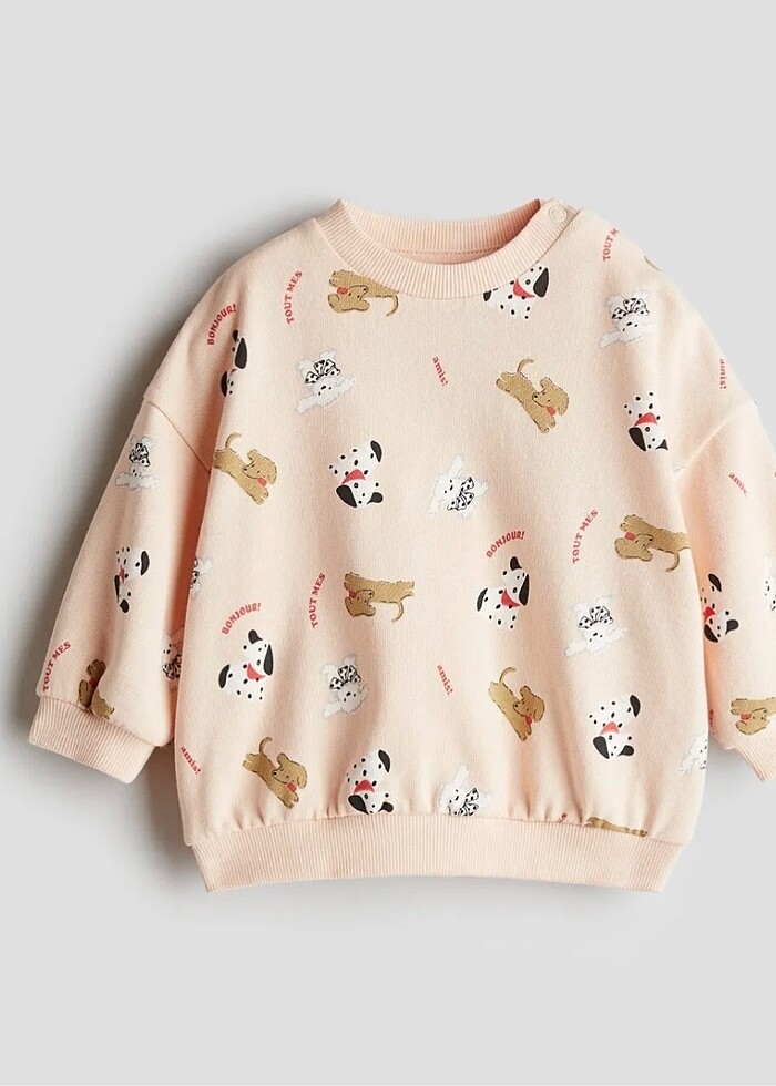 Product Description Baskılı ve pamuklu hafif sweatshirt kumaştan üst. Ribana şeritli yuvarlak yakalı, yakasının bir yanı çıtçıtlı , düşük omuzlu, uzun kollu. Manşetleri ve etek ucu ribanalı. Article Description Şeftali rengi/Köpekler Desenli Fit Normal kesim Style Yuvarlak yakalı Gerektiğinde sadece ağartıcısız çamaşır suyu kullanılabilir Yüksek ayarda ütülenebilir 40°C makinede yıkama Kuru temizleme yapılmaz Asarak kurutma