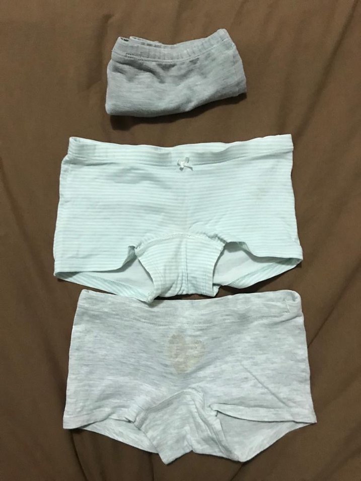 Beyaz ve gri renklerde, rahat kesim çocuk iç çamaşırı seti. Düz ve sade tasarıma sahip. 3 adet iyi durumda