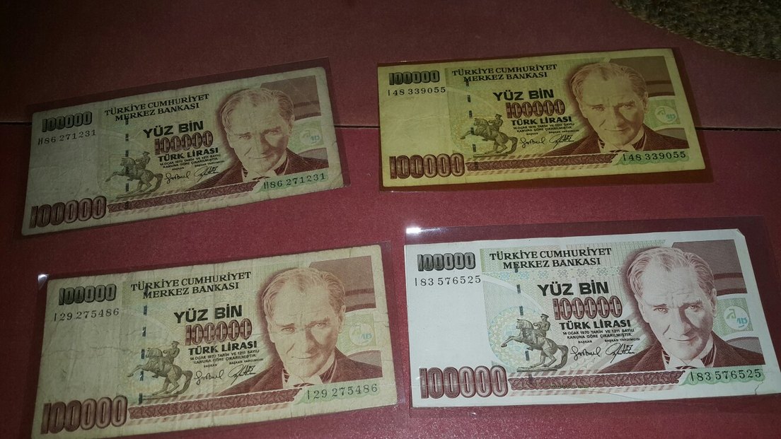 4 Adet 100000 Yüz Bin Eski Türk Lirası