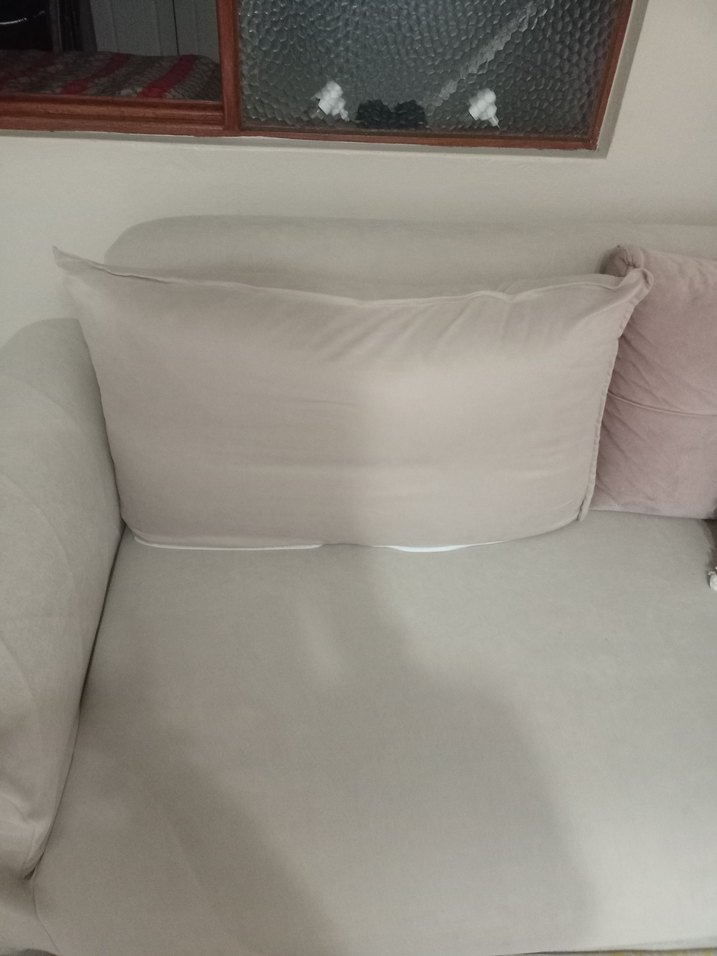 Pastel bej tonunda, ada fon kumaşından büyük sırt yastık kırlentidir.Sadece denemek için kullandım.Ölçüsü küçük geldiği ve rengi uymadığı için satıyorum.