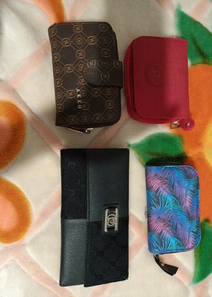 Orjinal Pierre Cardin, orjinal Vakko (v harfi yok düştü) ve iki adet daha bijuteri cüzdan