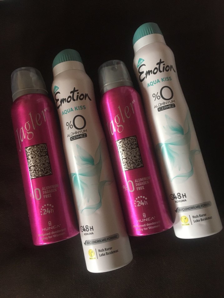 2 adet Emotion deodorant büyük boy 200ml + 2 adet Jagler deodorant 150ml.Orijinal sıfır ürün görsel dekilerin hepsi birlikte