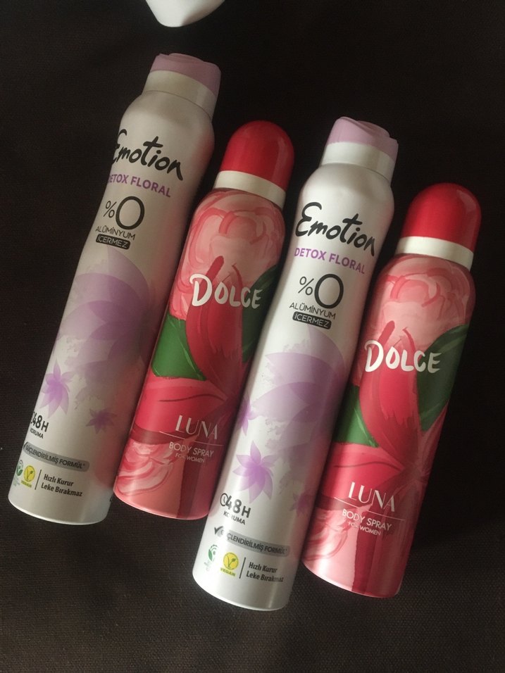 2 adet Emotion deodorant büyük boy 200ml + 2 adet Dolce deodorant 150ml.Orijinal sıfır ürün görsel dekilerin hepsi birlikte