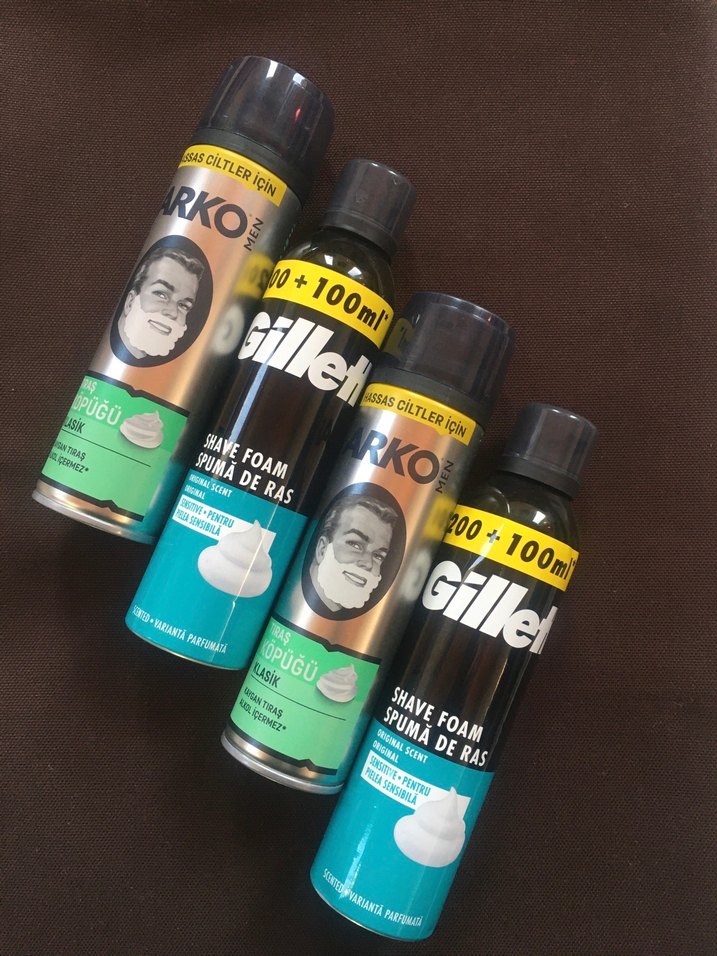 2 adet gillette traş köpüğü büyük boy 300ml.+ 2 adet Arko traş köpüğü 200ml.orijinal sıfır ürün.görseldekilerin hepsi birlikte.