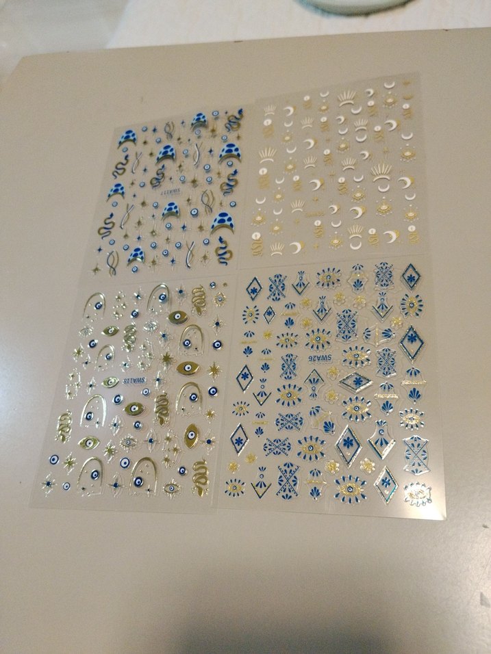 4 adet Mavi ve Altın Tırnak Süslemeleri Seti