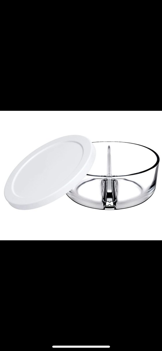Beyaz kapaklı şeffaf kahvaltılık.Paşabahçe polar. İkili bölmelidir, toplam 4 adet.