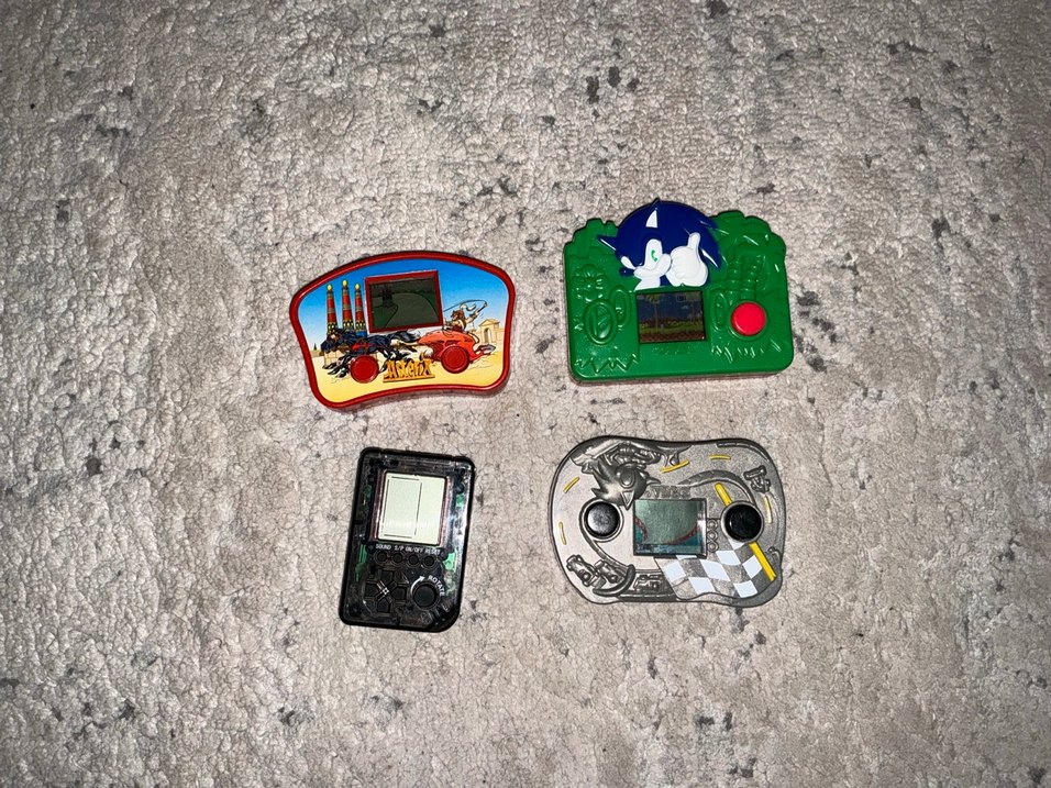 Farklı temalarda dört adet retro el konsolu oyunu, basit LCD ekran ve temel kontrollerle nostaljik tasarımlar sunar.
