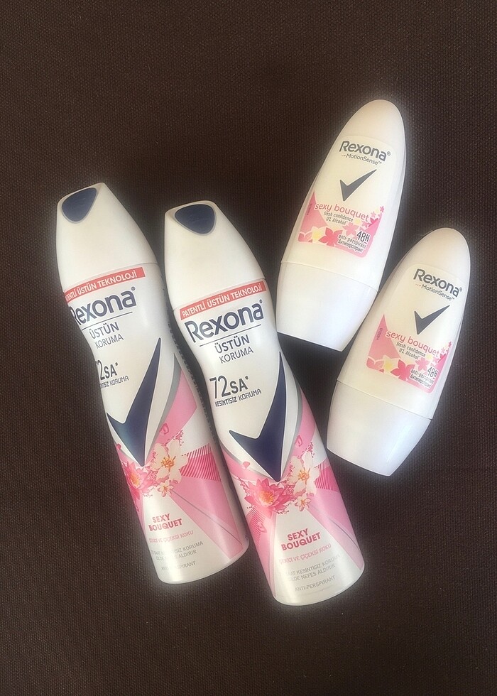 2 adet rexona deodorant sexy bouquet 150ml + 2 adet rexona roll onn sexy bouquet.orijinal sıfır ürün.görseldekilerin hepsi birlikte.