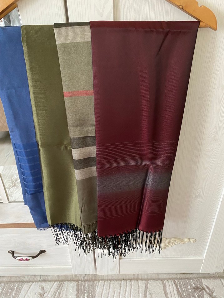 Haki olan bir kere kısa süreliğine kullanıldı yıkandı ütülendi diğerleri hiç kullanılmadı sıfır, iğne izi yok tertemiz sıfır şallar hepsinin fiyatıdır #tafta #taftaşal