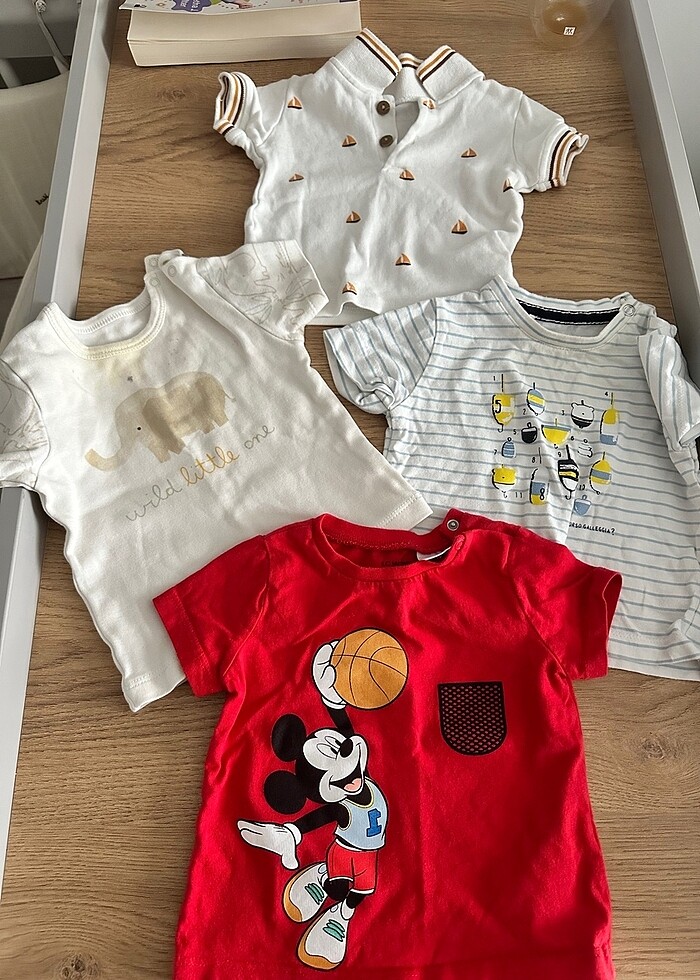 Birinde leke var ama o tshirtün de dokusu çok güzel ben uğraşmadım leke belki çıkar. Lc ve ebebek karısık markalar