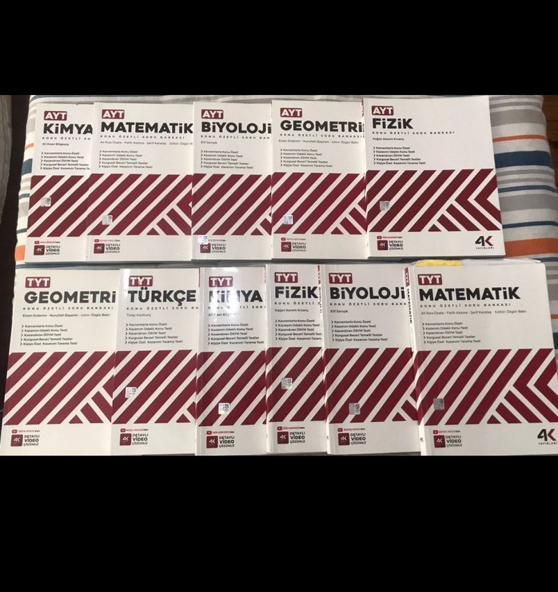 AYT ve TYT sınavlarına yönelik Matematik, Biyoloji, Geometri, Fizik, Türkçe ve Kimya derslerini kapsayan 10 kitaplık sınav hazırlık seti.