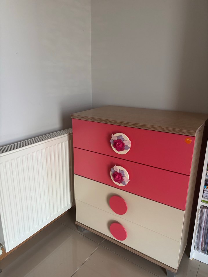 4 çekmeceli, pembe ve beyaz renkli- içi geniş şifonyer