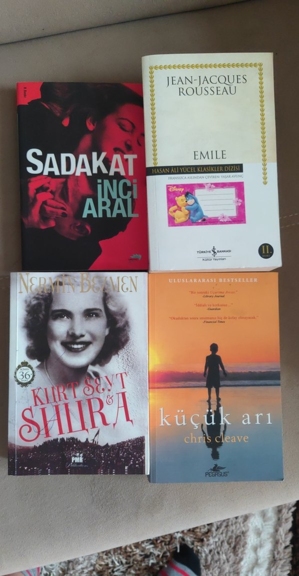 İnci Aral'dan Sadakat, Jean-Jacques Rousseau'dan Emile, Nermin Bezmen'den Kurt Seyt & Şura ve Chris Cleave'den Küçük Arı kitaplarını içeren 4 kitaplık set.