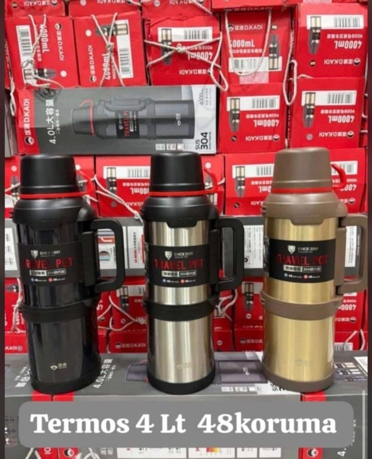 4 litre kapasiteli termos, sıvıları 48 saat sıcak veya soğuk tutar. Taşınabilir kulplu sağlam tasarıma sahiptir. Çocuklar için uygundur.