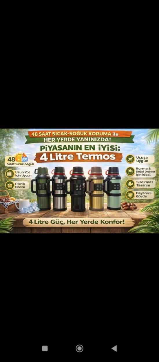 48 saat sıcak-soğuk koruma sağlayan 4 litre kapasiteli termos. Uçuşa ve uzun yola uygun, sızdırmaz tasarımlı, dayanıklı gövdeye sahip. Piknik ve doğal yiyecekler için ideal.