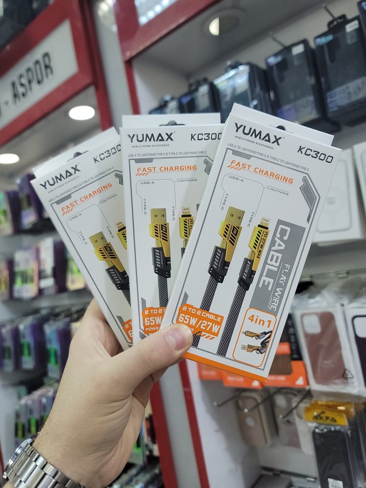 4'lü 1 arada derken, hem 2 taraf Type-C olur ... hem bir taraf Type-C bir taraf USB-A ... hem bir Type-C bir Lightning (iPhone) ... hem de bir Lightning (iPhone) bir USB-A, olabilir. Hızlı 65W şarj etme destekliyor. Kablo uzunluğu 1 metredir, ve kumaş kaplaması var. Data transferi desteklemiyor.
