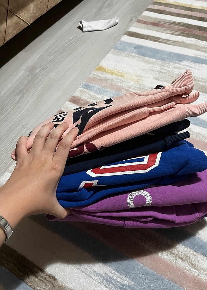 Tek satmaya gerek yok çok cüzi bir miktara günlük ev içinde giyebileceğiniz sweatshirtler. Toz pembesi olan small, lacivert olan small, mavi timsahlı olan Medium, mor olan small uzun.
