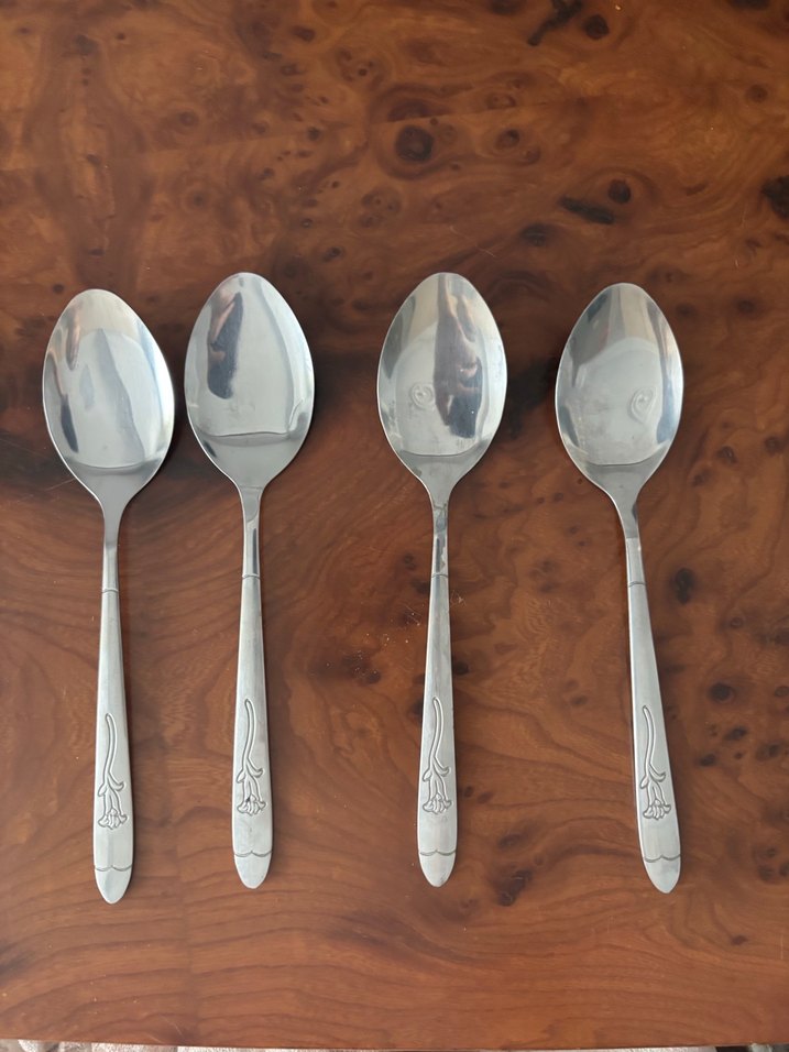 Dört parça kaşık, sade desenli saplarla günlük kullanım için uygundur.