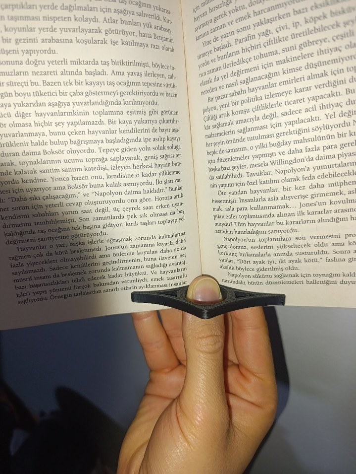 ÜRÜNLER KENDİ ÜRETİMİMİZDİR. ✨ Tek Elle Rahat Okuma Deneyimi: 4'lü Kitap Tutucu ve Ayraç Seti ✨ Kitap okumayı seven, not alan veya ders çalışan herkes için vazgeçilmez bir yardımcı! Bu 4'lü fonksiyonel set, okuma konforunuzu artırmak ve sayfa kaybetme sorununa kesin çözüm sunmak amacıyla özel olarak tasarlanmıştır. ⚙️ Üretim ve Malzeme Farkı 3D Baskı Teknolojisi: Ürünlerimiz, en son teknoloji 3D Yazıcı kullanılarak, hassas ve kaliteli üretimle elde edilmiştir. Bu sayede benzersiz ve hafif bir yapıya sahiptir. Malzeme Kalitesi: Yüksek kaliteli ve çevre dostu Cr-PLA Matte (Mat Krom PLA) filament kullanılmıştır. Bu malzeme, standart PLA'ya göre daha dayanıklı ve yüzeyinde ışığı yansıtmayan, şık bir mat görünüme sahiptir. Dayanıklılık: Hafif olmasına rağmen, günlük kullanıma ve düşmelere karşı oldukça dirençlidir. Çift Fonksiyonlu Tasarım: Sadece bir okuma ayracı değil, aynı zamanda kalın kitaplarda bile sayfaları açık tutmanızı sağlayan ergonomik bir kitap desteğidir.