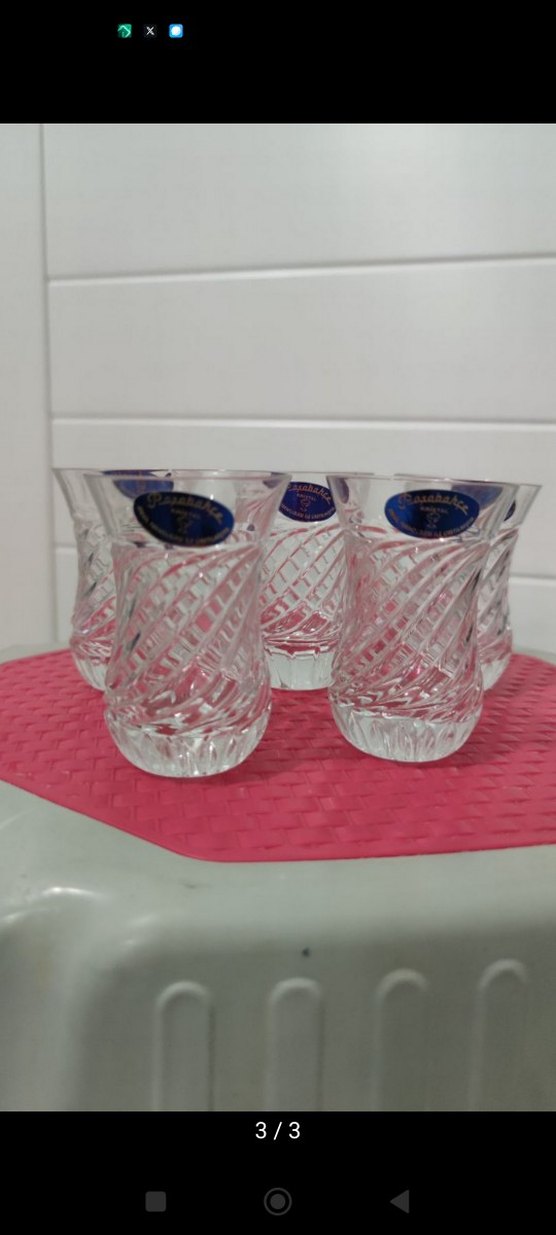 Desenli tasarıma sahip, 4 adet kristal çay bardağı seti.