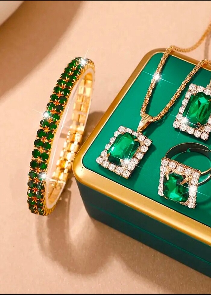 4 lü yeşil şık mücevher seti