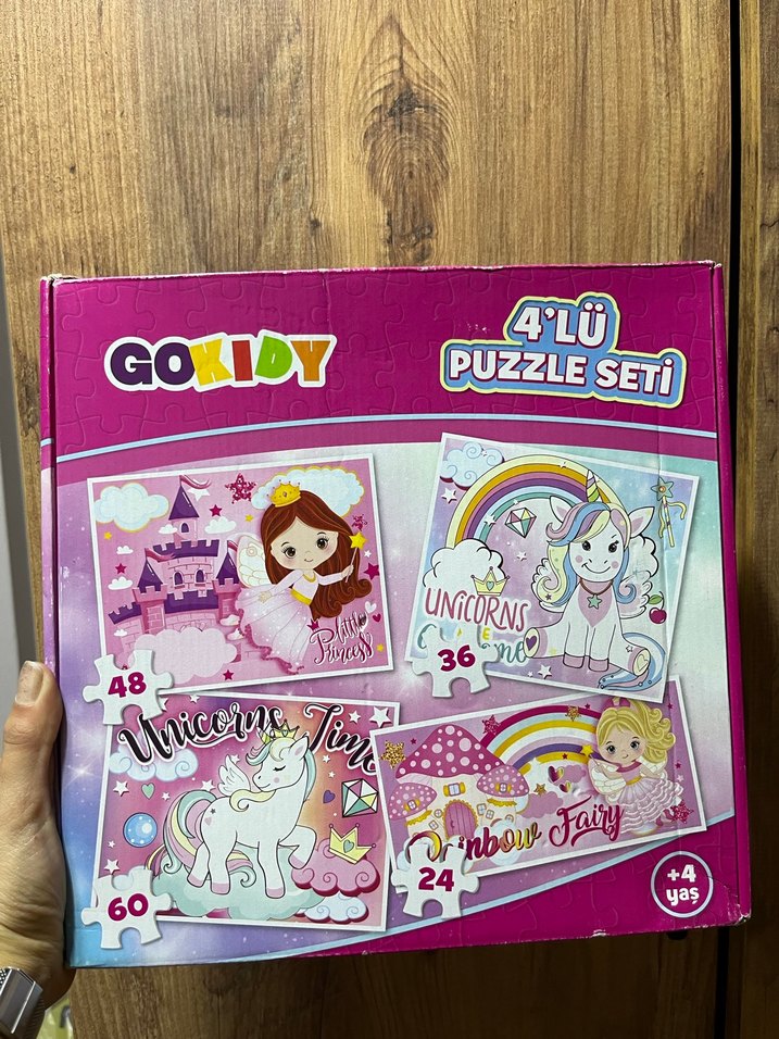 4 parçadan oluşan pastel pembe tonlarında unicorn temalı puzzle seti, prenses, unicorn ve peri figürlerini içerir. 4 yaş ve üzeri için uygundur.