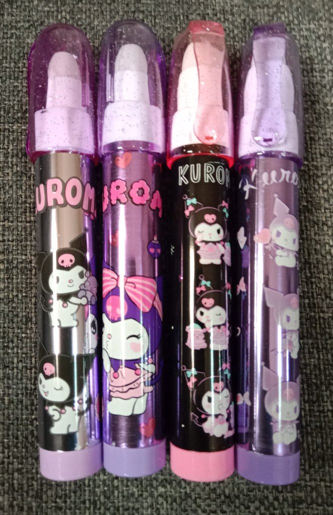 Mor ve pembe kapaklı, Uromiroa ve Kuron karakterli renkli işaretleyici kalemler. Her biri sevimli tasarıma ve canlı renge sahiptir. ️4 adettir
