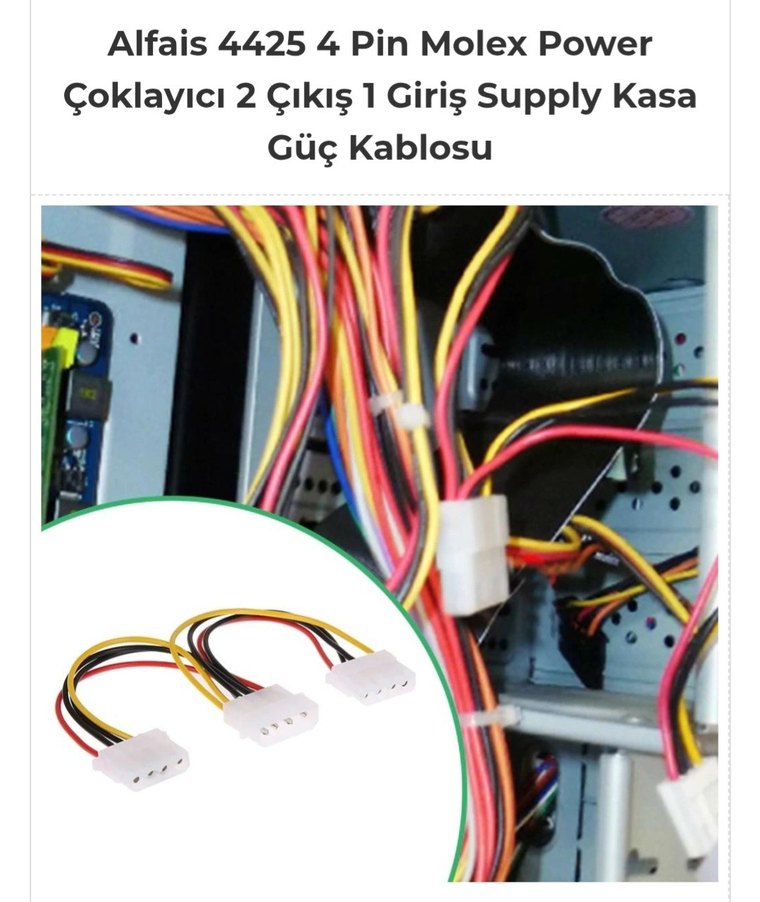 4 Pin Molex Power Çoklayıcı 2 Çıkış 1 Giriş Suppl Kasa Güç Kablo