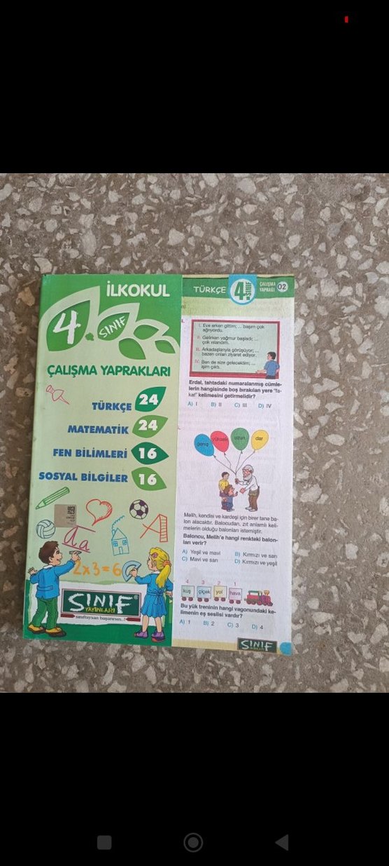 4. sınıf için Türkçe 24, Matematik 24, Fen Bilimleri 16 ve Sosyal Bilgiler 16 çalışma yaprağı içerir. sıfır üründür