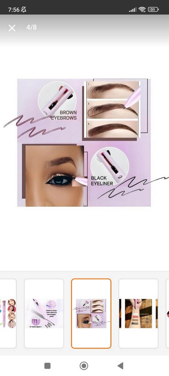 Pastel pembe renkte 4'ü 1 arada makyaj kalemi, göz kalemi, kaş kalemi, dudak kalemi ve highlighter içerir. Suya dayanıklıdır.