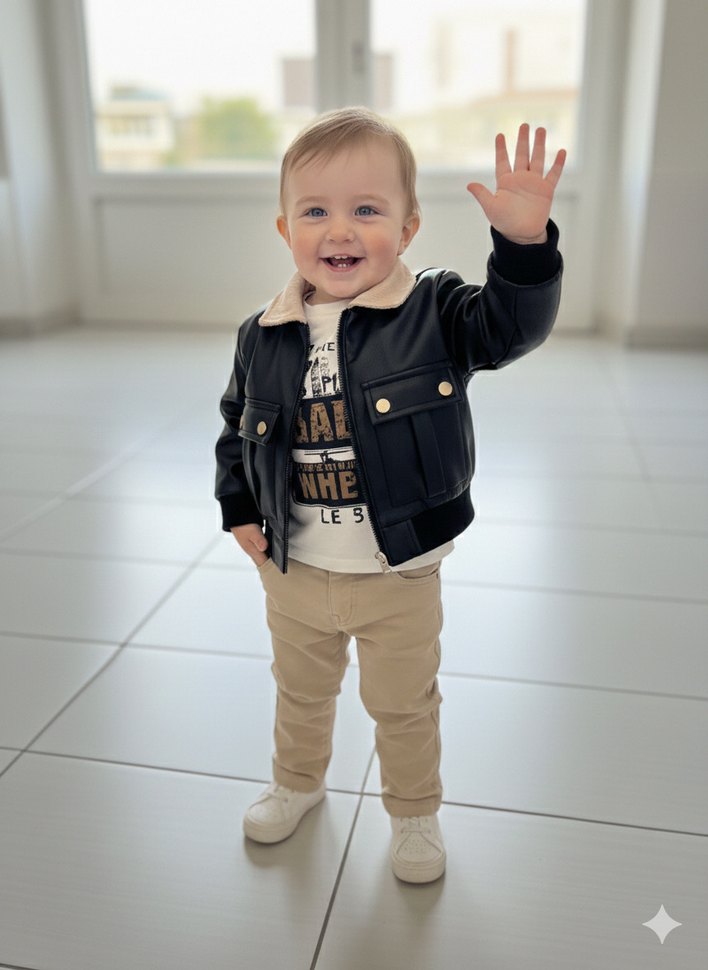 Deri ceket badi ve pantolon olmak üzere üçlü takımdır