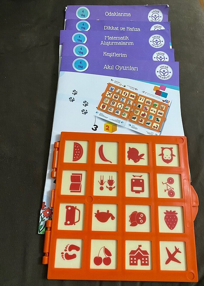 Çpcuk akademi 4 yaş dikkat seti 5 kitap ve diğer parçalar Kitapların 1-2 si biraz kullanıldı diğerleri kullanılmadı