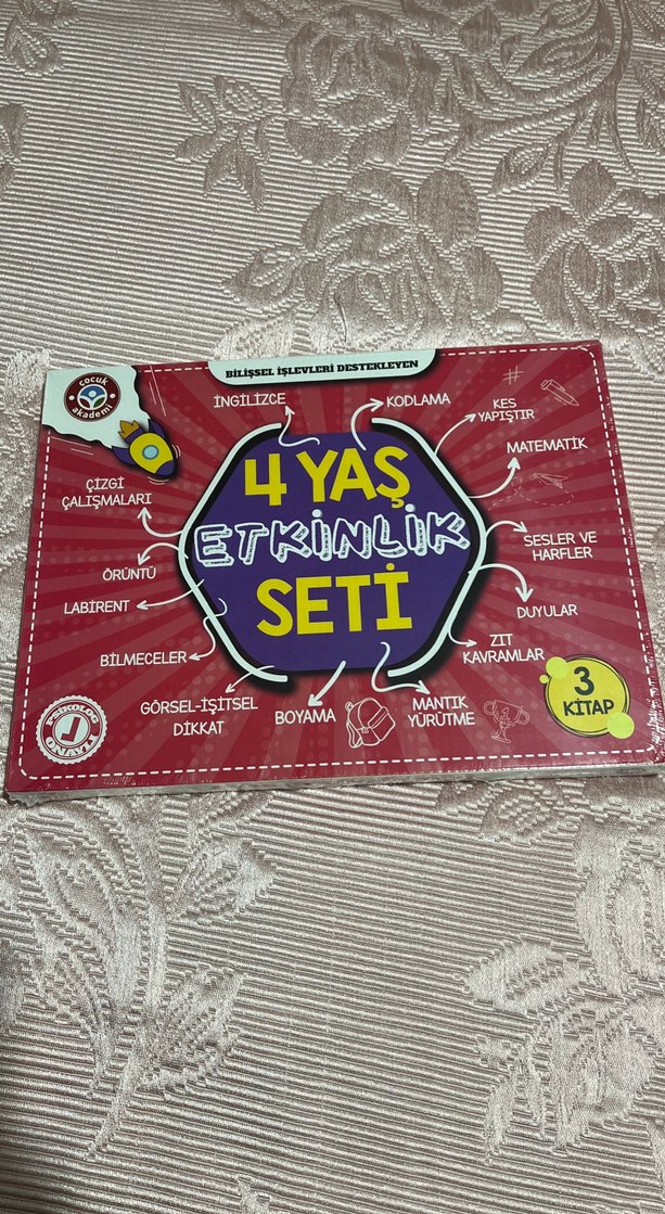 4 yaş çocuklar için 3 kitaplık etkinlik seti, boyama, bilmeceler, kodlama, matematik ve duyusal çalışmalar içerir. Zihinsel gelişimi destekler.