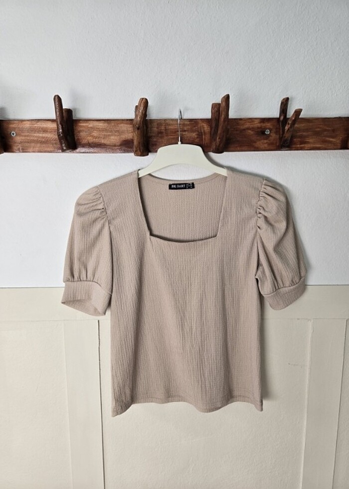 Camel rengi karpuz kollu Kare yaka t -shirt