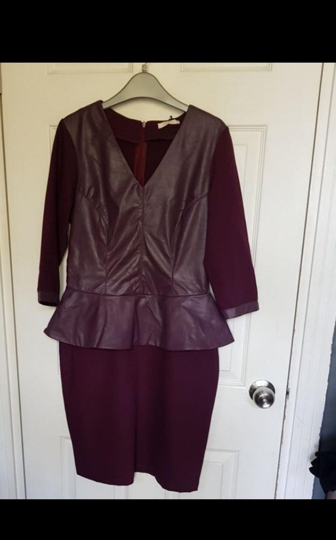 40 beden mürdüm rengi ust kısmı deri görünümlü volanlı kışlık elbise.. etiketli. boy 92 cm .iki kol altı arası 44 cm pbv
