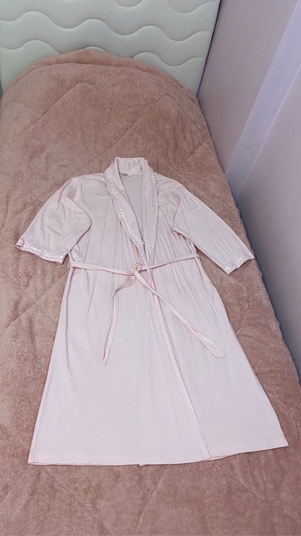 Pembe renkli, uzun boylu, kısa kollu ve bol kesim kadın sabahlığıdır. Kuşaklı ve desensiz, rahat bir kullanım sunar.