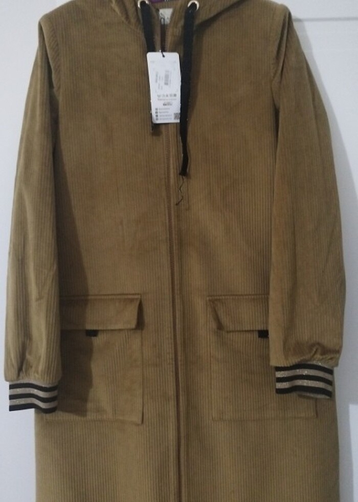 Camel rengi/fitilli kadife/kapşonlu/ astarlı/ fermuarlı/ cepli 40 beden şık ve Spor