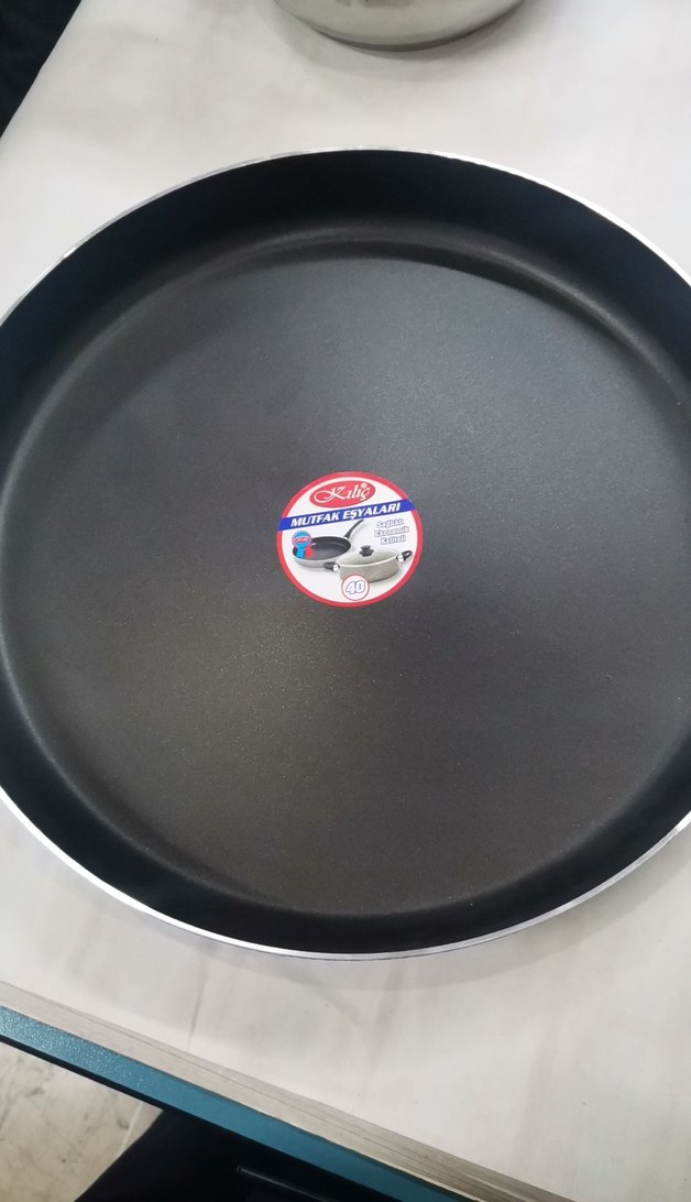 40 cm çapında siyah yüzeyli, dış kısmı gri renkte yuvarlak tava.