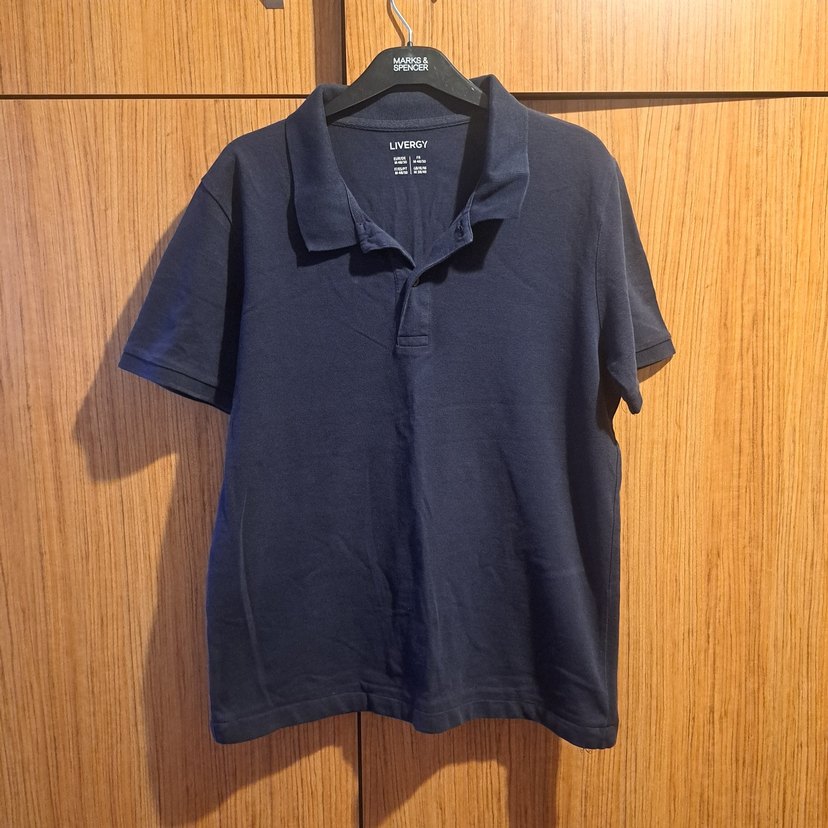 40 Livergy markalı, kısa kollu, yakalı ve bol kesim lacivert denim erkek polo tişört. Günlük kullanıma uygun sade ve rahat bir model.