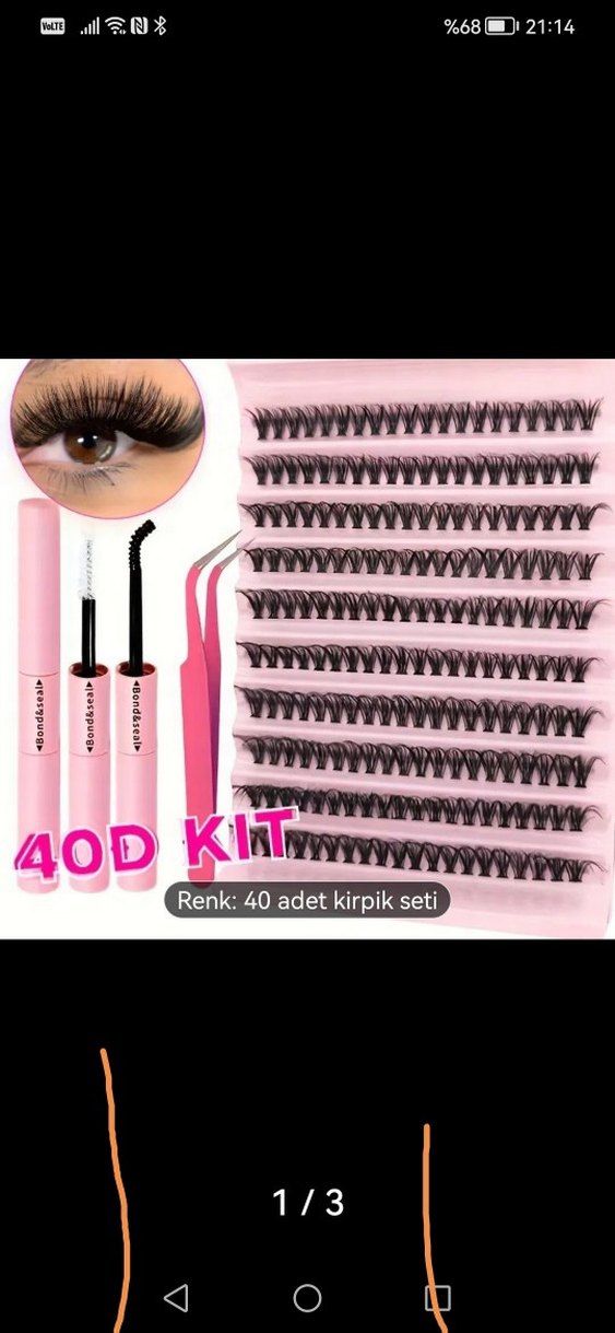 40 adet açık pembe takma kirpik seti ve uygulama aparatları içerir. Göz görünümünü doğal bir şekilde güçlendirir.