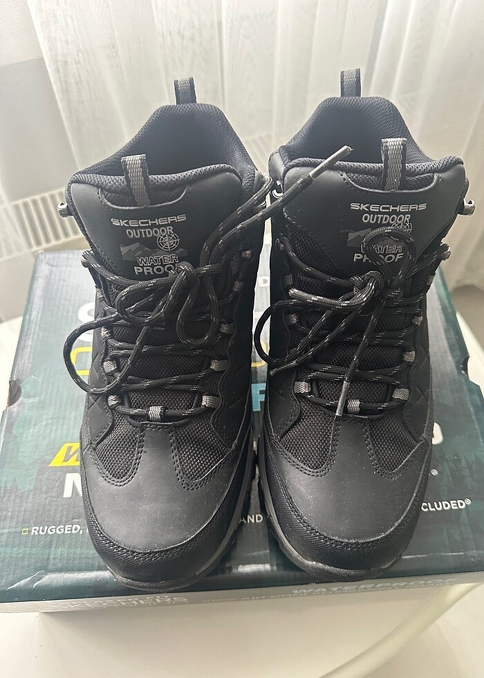 41,5 NUMARA SKECHERS 66283/BLK SELMEN -TELAGO BLACK WATERPROOF BOT MAĞAZA FİYATI GÜNCEL 8.500 TL.DİR Deri, polyester ve sentetik malzemelerden üretilmiştir Bağcıklı, rahat, sportif, bilek yüksekliğinde yürüyüş tarzı bot olarak tasarlanmıştır Pürüzsüz, dayanıklı, aksiyon deri saya kullanılmıştır Nefes alabilen rahatlık için baş kısmı ve yakada pürüzsüz naylon örgü kumaş panellerle birlikte delikli vurgular mevcuttur Yumuşak kumaştan iç astarı vardır Perçinli metal üst delikli bağcıklı ön panel mevcuttur Air Cooled Memory Foam yastıklı, konforlu ve hava alma özelliği olan iç taban teknolojisi kullanılmıştır Şok emici orta tabana sahiptir Esnek kauçuk yüksek tutuş sağlayan çıkıntı desenli dış tabana sahiptir Relaxed Fit® teknolojisi ile üretilmiştir Topuk yüksekliği 3,5 cm'dir Nefes alabilir tasarıma sahiptir Yan kısımda S logosu mevcuttur