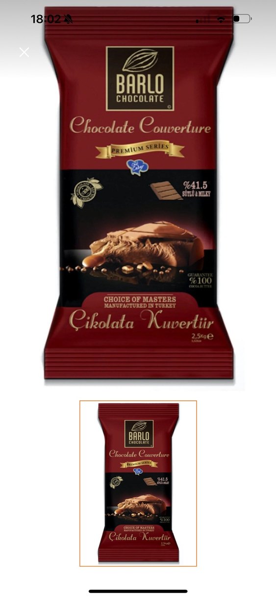 %41.5 sütlü ve bitter çikolata içeren premium serisi kuvertür çikolata, 2.5 kg ağırlığındadır.