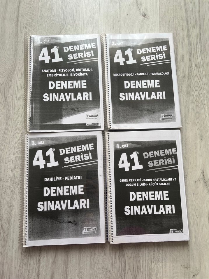 41 Deneme Serisi; anatomi, fizyoloji, mikrobiyoloji, dahiliye, pediatri ve cerrahi konularında deneme sınavları içerir.