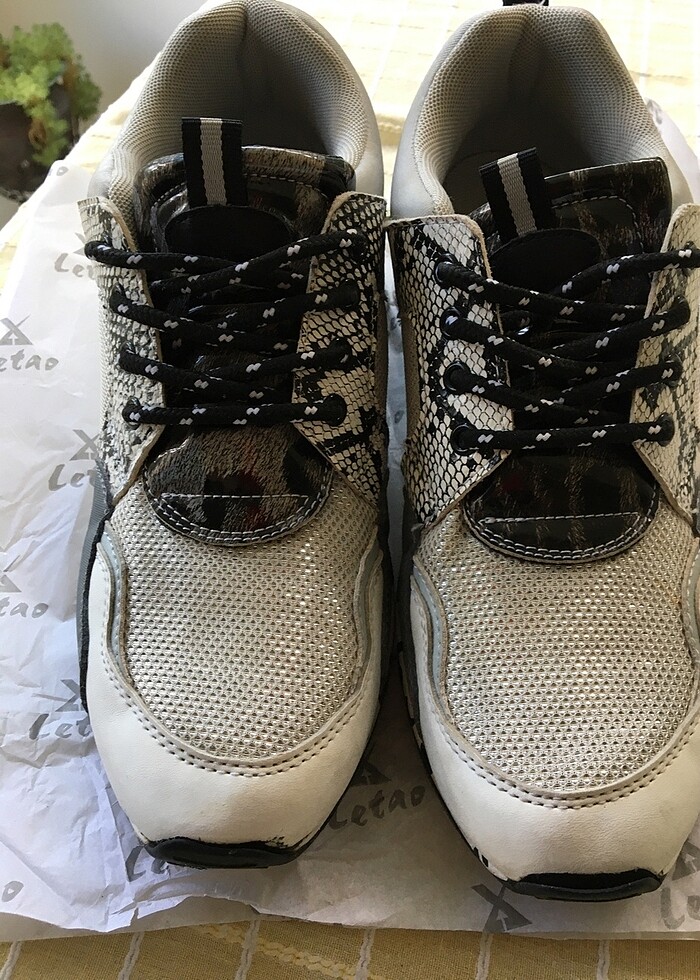 41numara ithal gri siyah yılan desenli bağcıklı çok az kullanım yeni sıfırdan farksız açık gri yerleri simli rahat topuk 5 cm hiçbir sorunu yoktur taban uzunluk 32 cm