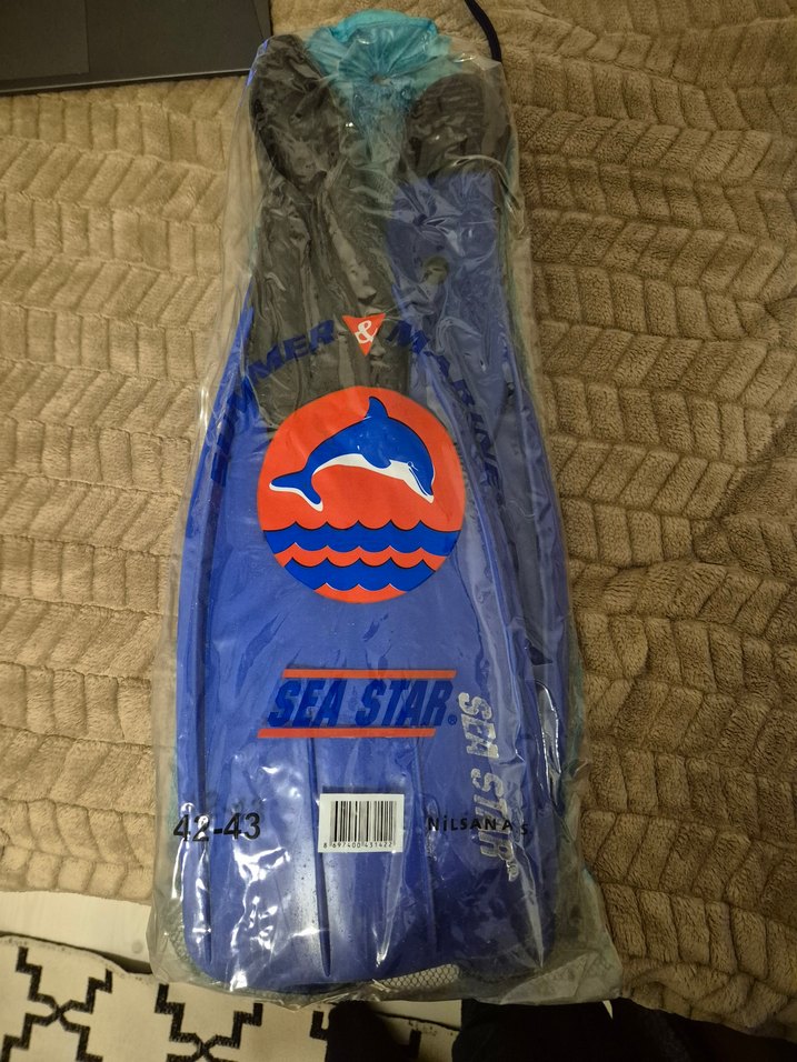 Erkekler için mavi kauçuk su paletleri, plaj kullanımı için uygundur. Minimalist ve desensiz tasarıma sahiptir, "SEA STAR" markalıdır.