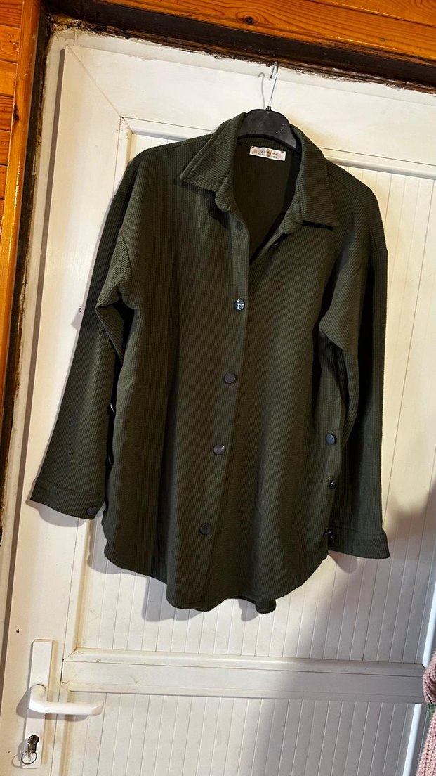 42 44 beden olurKadın Haki Keten Gömlek, Düğmeli, Salaş Kesim