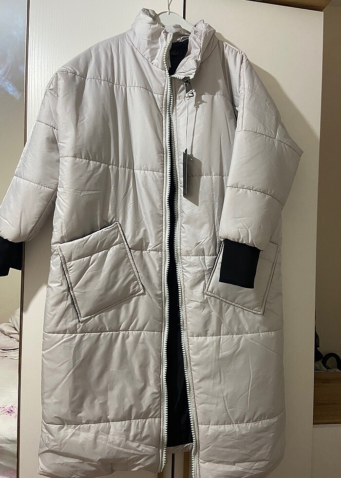 Marka temsili İnternet üzerinden sipariş verdim bol geldi iade süreci de geçince değiştiremedim rengi gümüş duruşu çok şık sıcak tutar alan asla pişman olmaz 44 bedene kadar da olur #kapitonemont #kapştonekaban #kapitone #suud #touch #kaban #mont #minikterzi #butiköz #armine