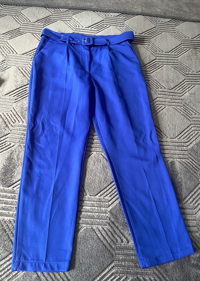 42 beden, kemer detaylı, yüksek likralı, yumuşak dokulu klasik kesim kumaş pantolon.